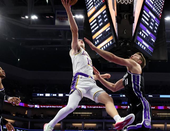湖人面对国王取得五连胜,上个赛季实现常规赛横扫 10月27日讯 湖人队127-120客场战胜国王。本场比赛湖人队赛前宣布,东契奇因伤无法出战,加上詹姆斯的缺阵,缺兵少将的紫金军团,只能临时换首发阵容。在比赛中文森特脚踝扭伤,提前离场,斯玛 2025/10/27